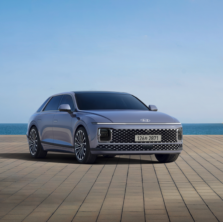 신형 그랜저 1.6 터보 하이브리드의 전면은 수평형 LED 램프와 파라메트릭 패턴 라디에이터 그릴이 강렬한 인상을 줍니다. 측면은 18인치 알로이 휠과 크롬 몰딩으로 고급스러움을 더했습니다. 후면은 슬림한 LED 리어램프와 넓은 트렁크로 균형 잡힌 모습을 보여줍니다.