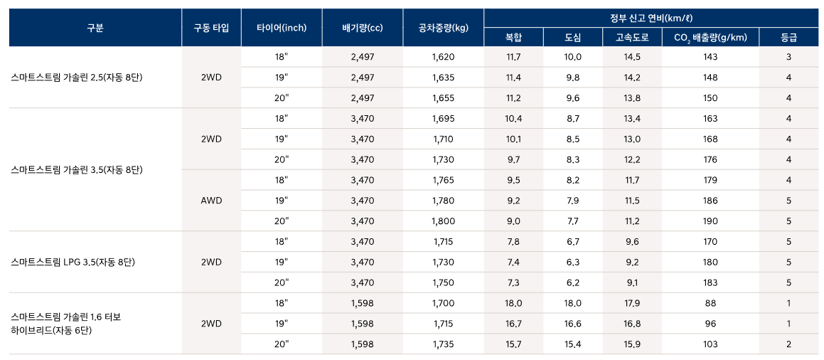 성능 연비 제원