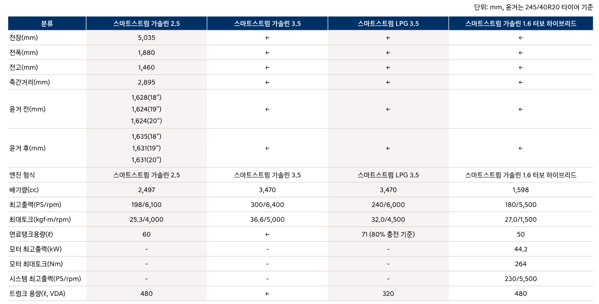 - 2.5가솔린 / 3.5가솔린 / LPI : 3개월 출고대기 (지난달대비 2개월 증가하였습니다)