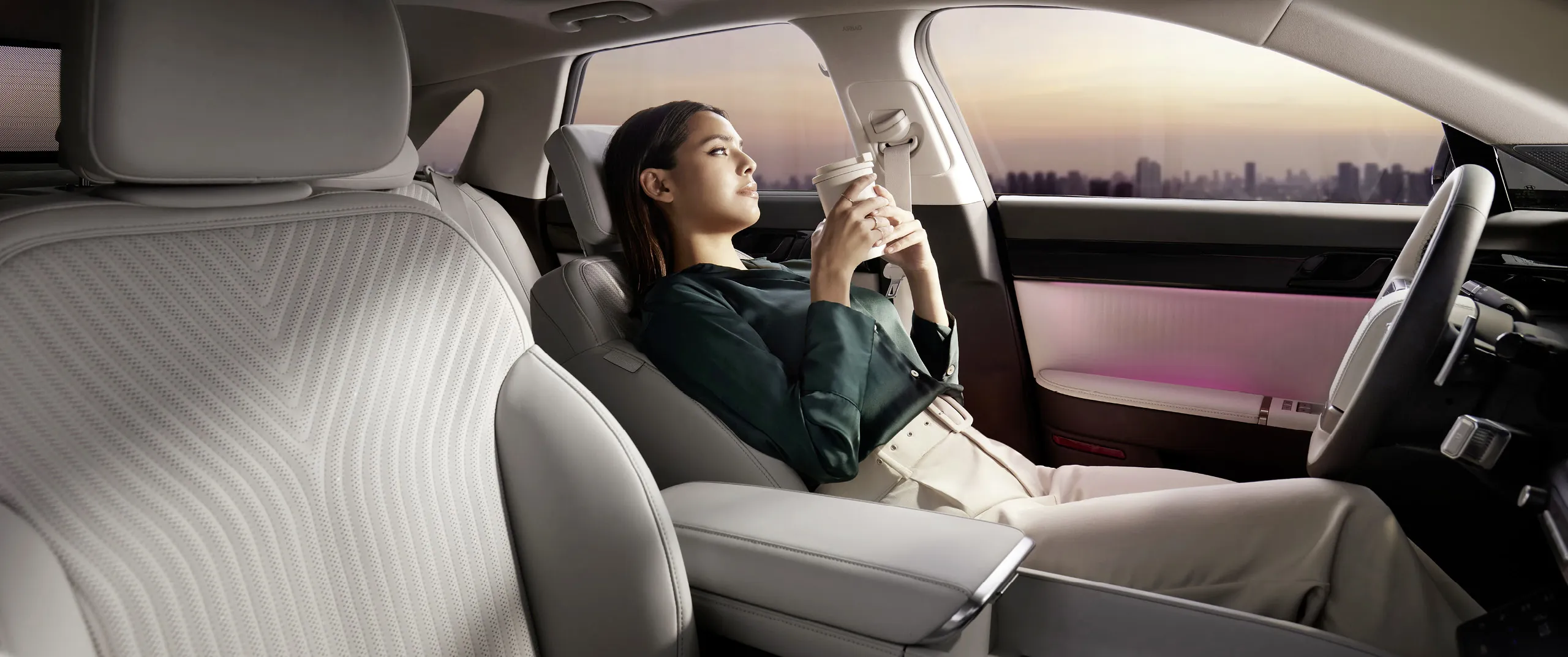 이 차량의 내부는 사용 편의성과 감성에 초점을 맞추어 디자인되었습니다. 인체공학 기반의 슬림화된 디자인으로 보다 넓고 안락한 느낌을 주며, 원 스포크 스타일 ‘D’컷 스티어링휠은 각 그랜저에서 영감을 받아 제작되었습니다.