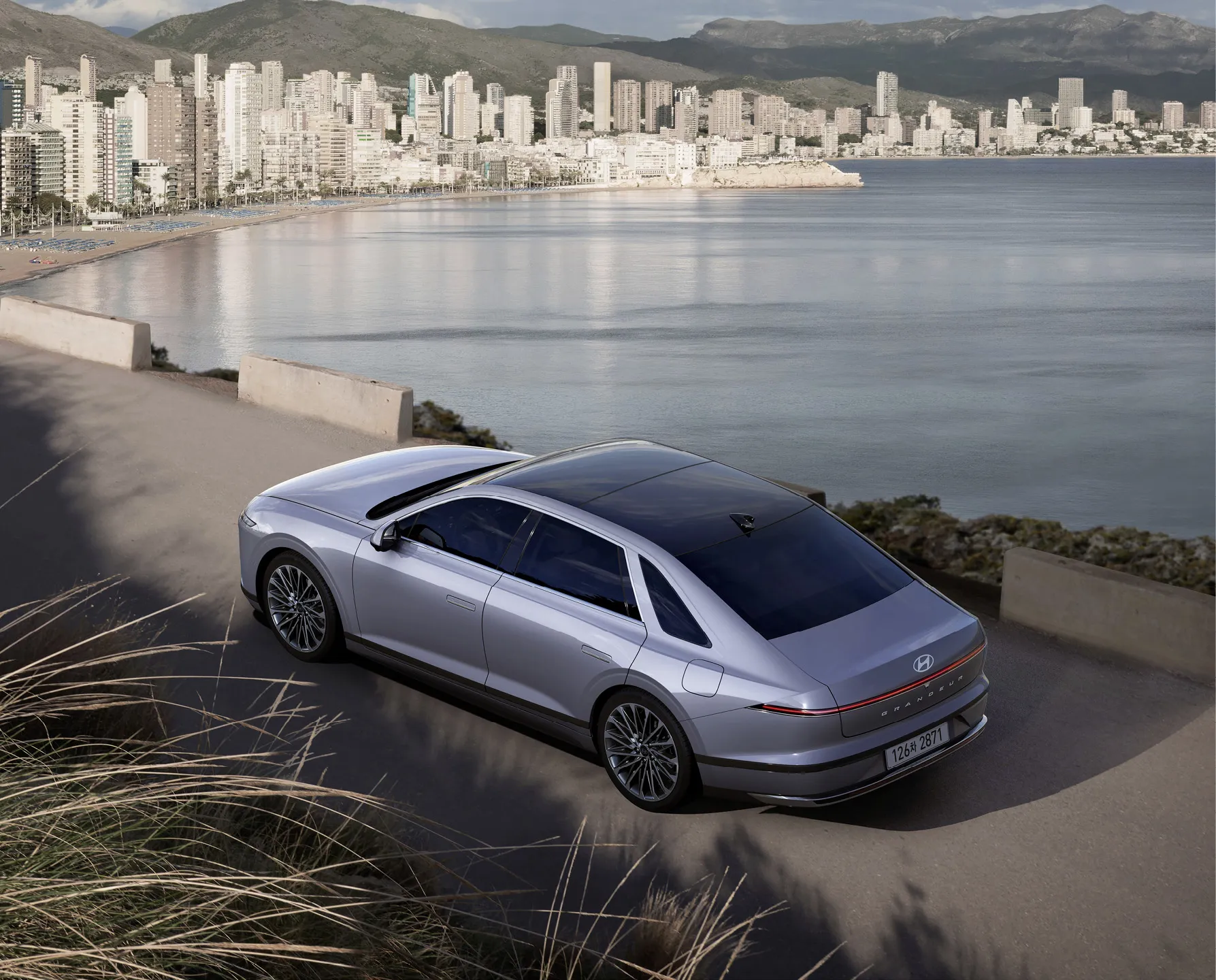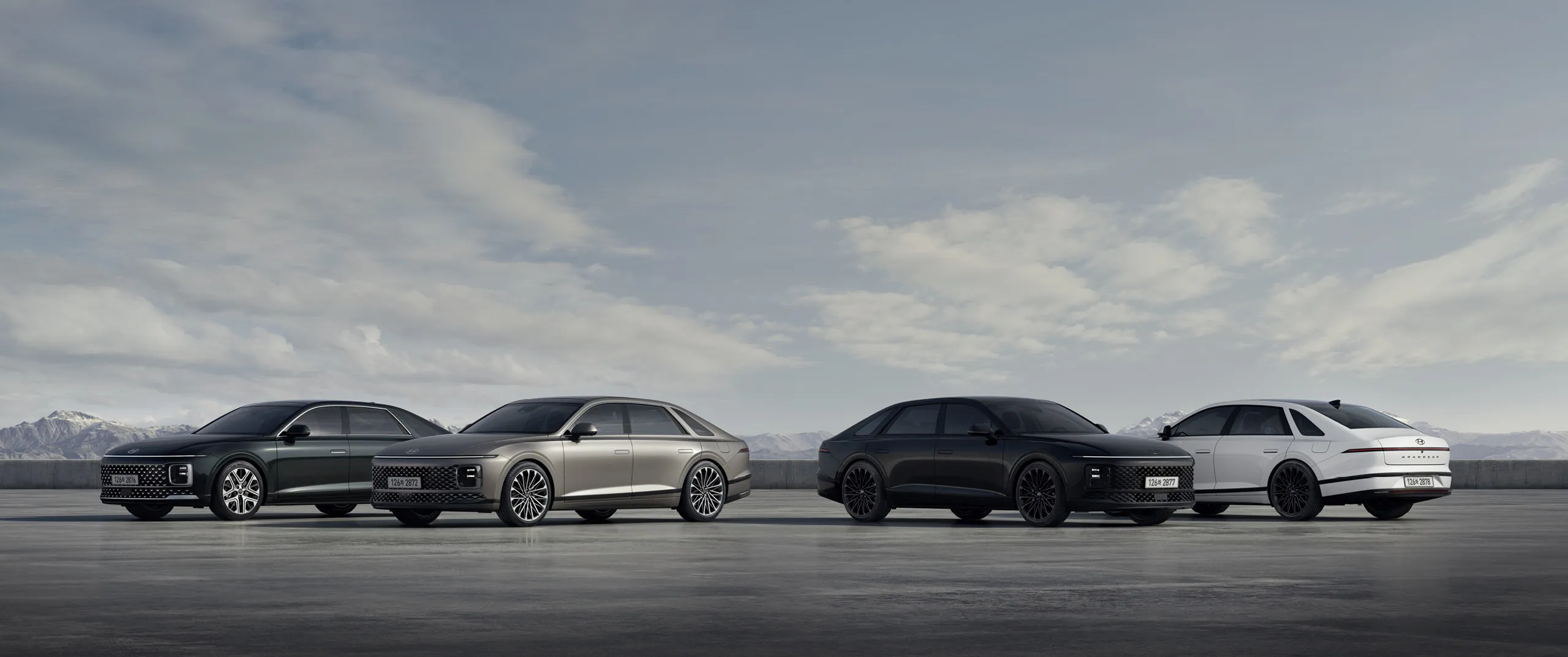 신형 그랜저 1.6 터보 하이브리드의 전면은 수평형 LED 램프와 파라메트릭 패턴 라디에이터 그릴이 강렬한 인상을 줍니다. 측면은 18인치 알로이 휠과 크롬 몰딩으로 고급스러움을 더했습니다. 후면은 슬림한 LED 리어램프와 넓은 트렁크로 균형 잡힌 모습을 보여줍니다.