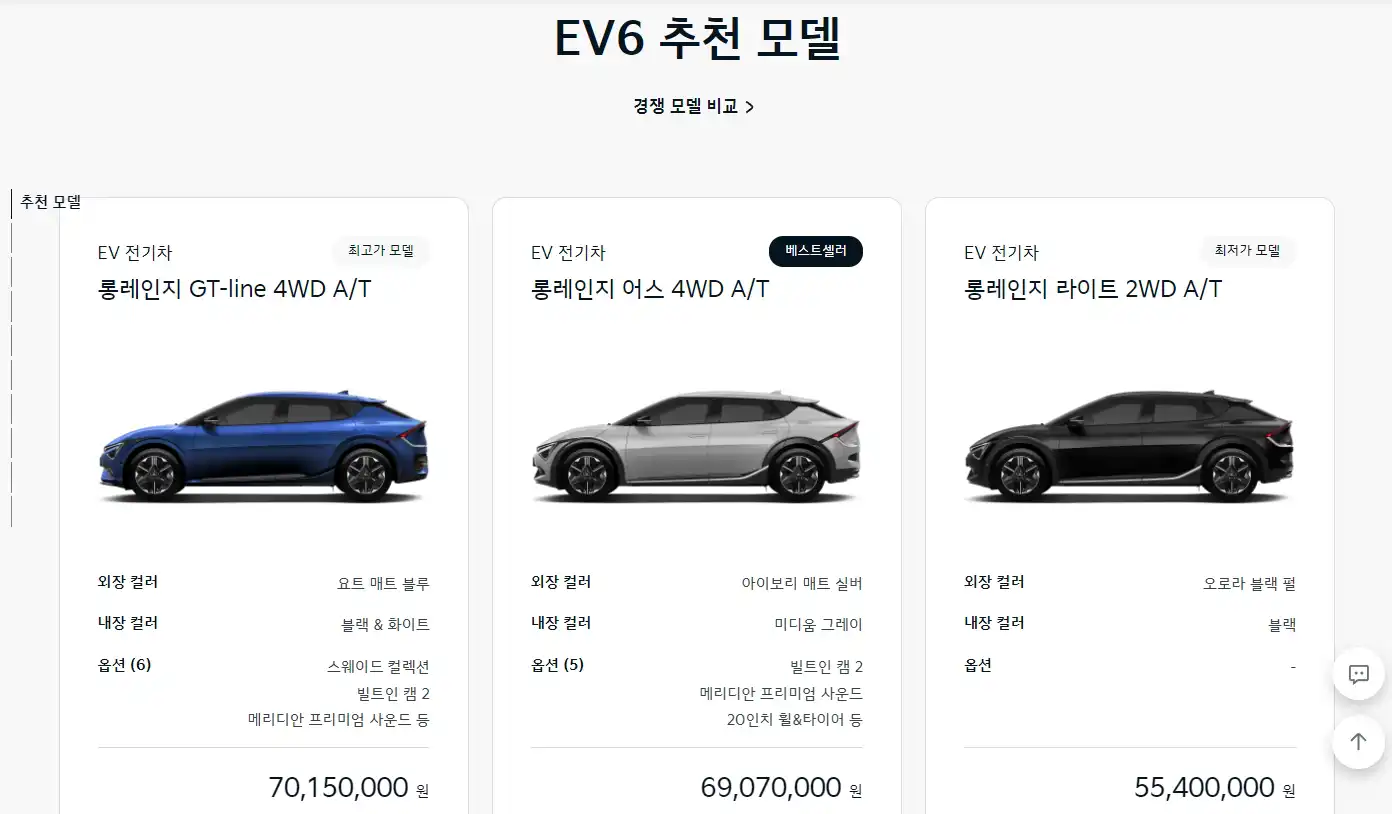 친구 분들이 가장 궁금해 하실 가격대입니다. 정부의 전기차 구매 보조금 지원 기준을 충족시키며, 동시에 상품성을 크게 높인 더 뉴 EV6는 전 트림에 걸쳐 기존 가격을 그대로 유지했습니다.