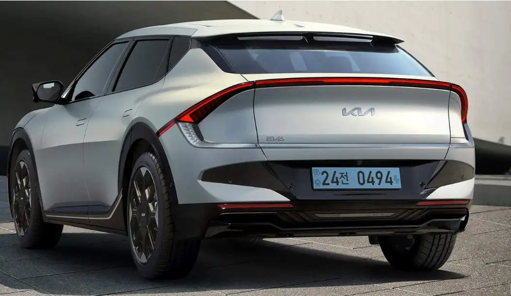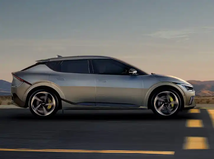측면 디자인은 기존 EV6의 모습 그대로입니다. 볼륨감 있는 휀더 라인, 점진적으로 상승하는 캐릭터 라인 등 SUV 스타일의 세련된 실루엣이 매력적이죠. 새롭게 적용된 알로이 휠 디자인도 눈여겨 볼 만합니다.
