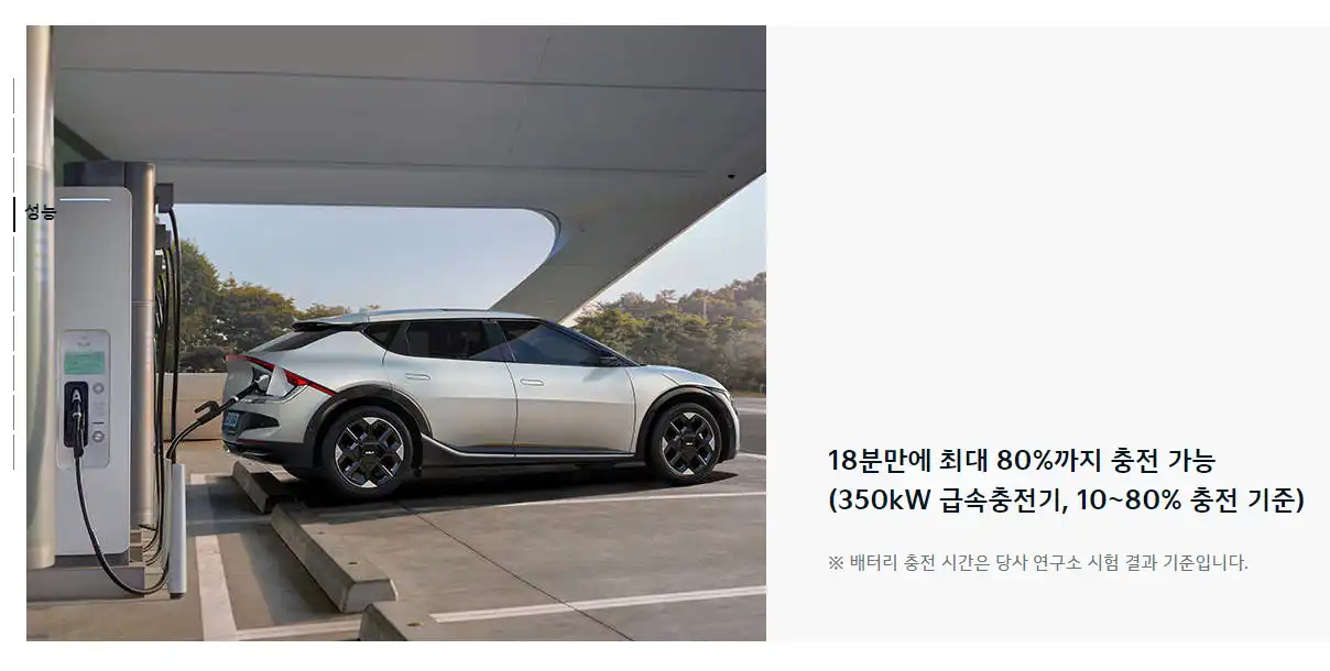 더 뉴 EV6가 가장 크게 달라진 점은 바로 배터리입니다. 기존 77.4kWh 배터리를 대신해 4세대 84.0kWh 대용량 배터리를 탑재했습니다. 에너지 밀도가 높아진 덕분에 1회 충전 주행 가능 거리가 475km에서 494km로 대폭 늘어났습니다.