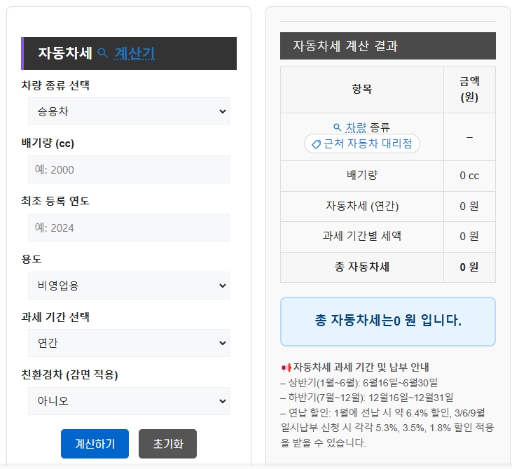 [3] 나라배움터 - 2024년 자동차세 세금 계산기 완벽 가이드 (https://e-learning.nhi.go.kr/blog/blog/viewPost_D.do?blogId=6276611&artNo=6279)