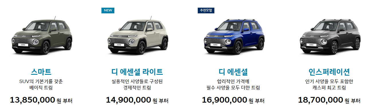| 캐스퍼 디지털 쇼룸 | 모델비교 | 모의견적 가격표 | 카탈로그 | 디지털 카탈로그 |