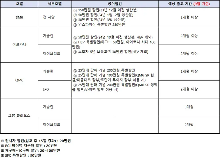 - SM6 인스파이어 모델: 추가 250만원 할인