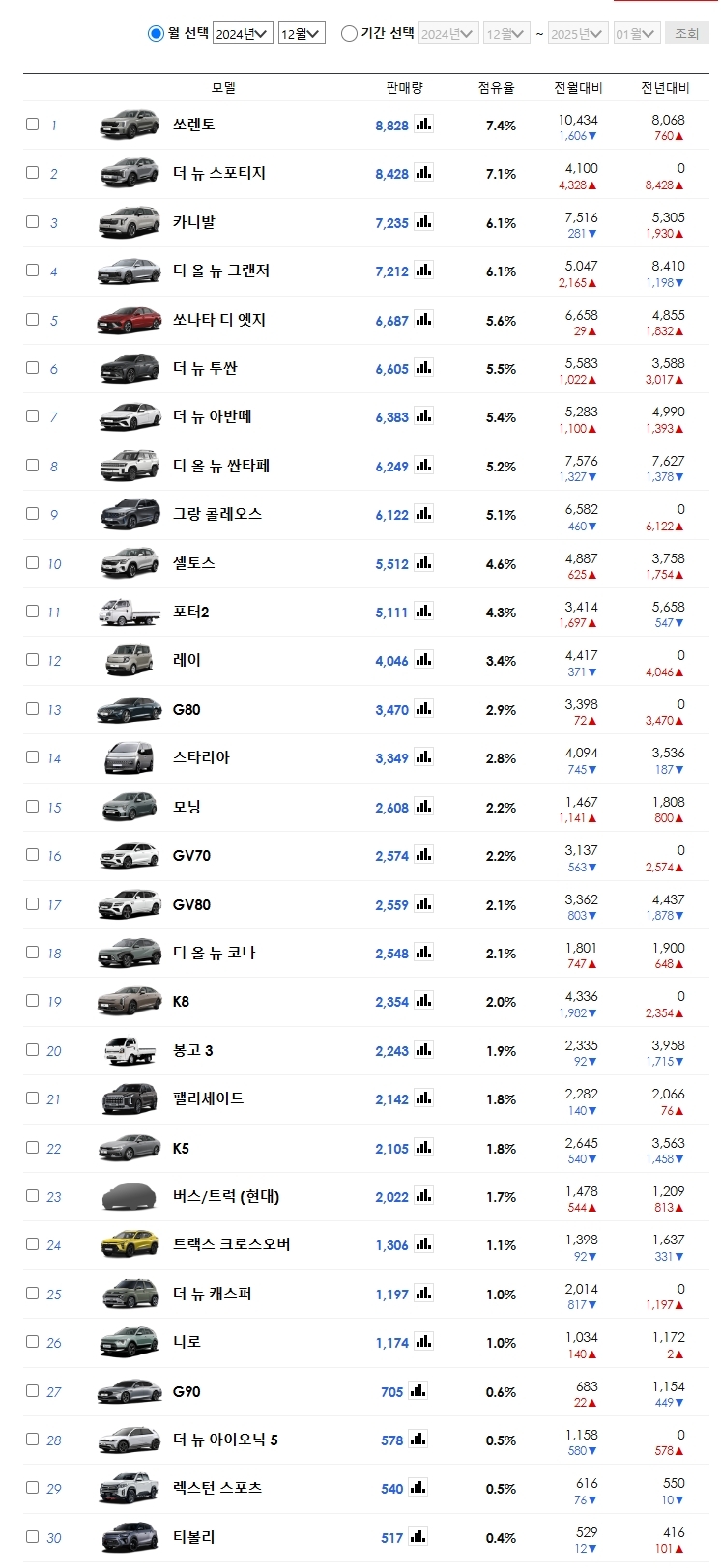 tags: #자동차판매량 #2024년12월자동차 #기아자동차 #쏘렌토판매량 #스포티지판매량 #카니발판매량 #그랜저판매량 #SUV강세 #자동차시장분석 #페이스리프트