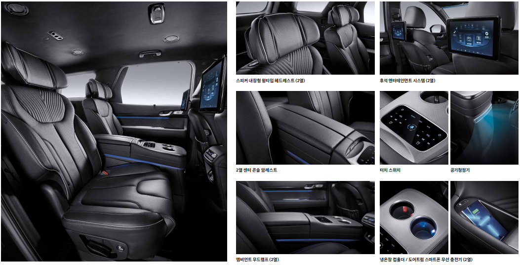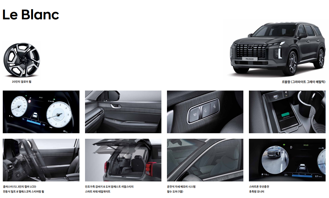 - 2열 통풍시트, 3열 시트 파워 리클라이닝, 크렐 프리미엄 사운드 시스템 등 주요 편의사양을 기본으로 제공하는 르블랑 트림 신설