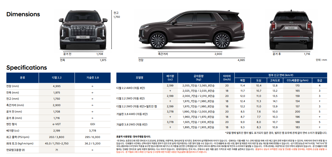 올 하반기 경쟁 SUV들의 연이은 풀체인지와 페이스리프트 모델 출시에도 불구하고 팰리세이드는 여전히 중형 SUV와 대형 SUV의 경계를 넘나드는 압도적인 크기와 상품성을 갖추고 있어, 5~7인승 SUV를 찾는 소비자들에게 여전히 매력적인 선택지입니다.