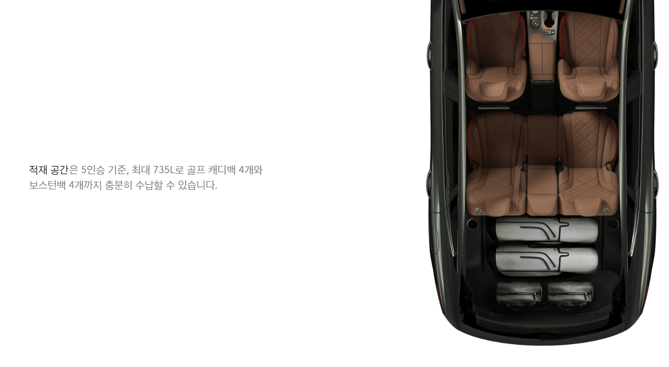 GV80은 넉넉한 트렁크 공간을 갖추고 있습니다. 2열은 4:2:4 폴딩이 가능하여 탑승 인원과 활동에 따라 유연하게 대처할 수 있습니다. 특히 가족들과 차박이나 캠핑을 즐기는 분들에게 매력적인 공간일 것입니다.