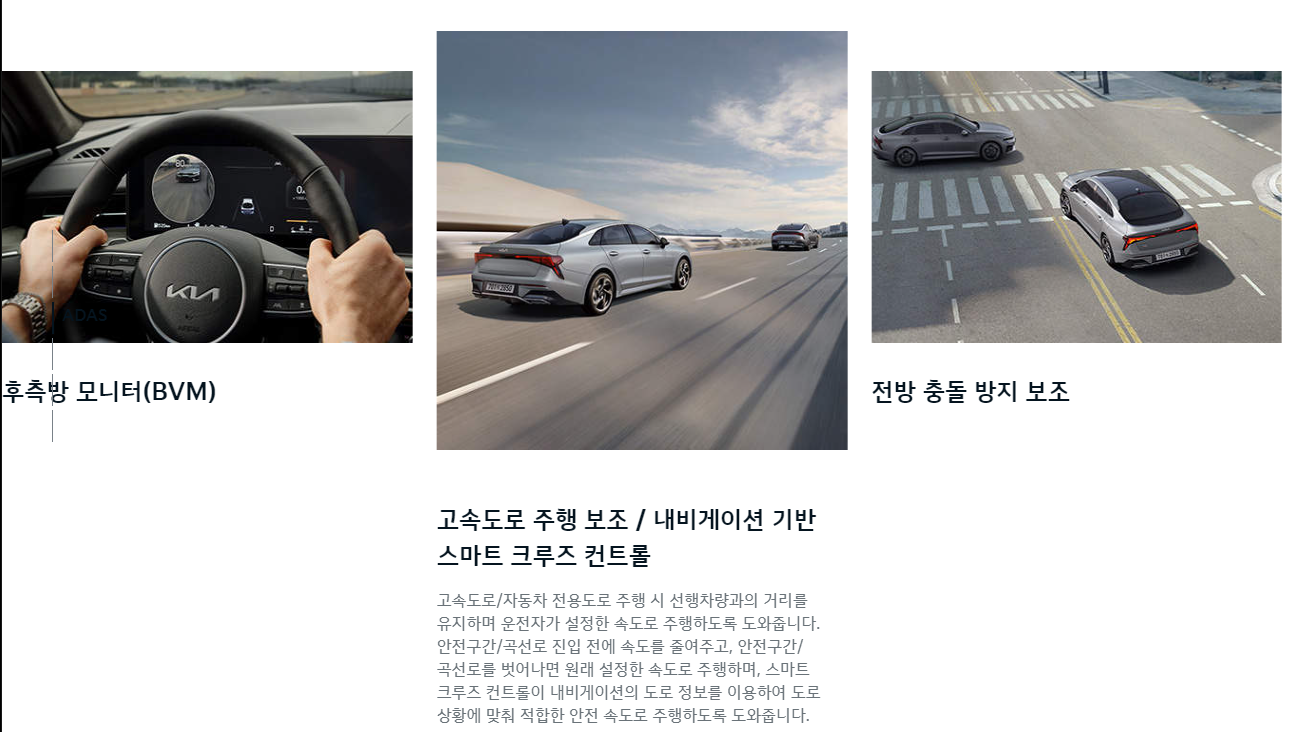 또한 무선업데이트(OTA)를 기본 적용했으며, 스마트키 없이 스마트폰이나 워치를 지니고 차량으로 가까이 가면 문을 열고 시동을 걸 수 있게 해숩니다. 그리고 사용자별 개인화 설정도 지원하는 기아 디지털 키 2, 전/후방 QHD급 고화질 영상 및 음성을 저장하는 빌트인 캠 2, e 하이패스, 지문 인증 시스템 등 고객들의 선호도가 높은 첨단 사양을 적용했습니다.