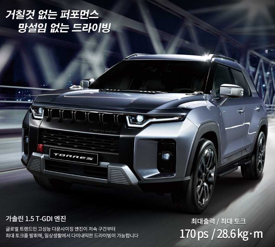 지금까지 설명드린 것처럼 더뉴 토레스는 실내 디자인 혁신을 바탕으로 오프로드 패키지, 블랙 에디션, 토레스 밴, LPG 바이퓨얼 모델 등 다양한 옵션을 추가했습니다. 소비자 취향에 따라 원하는 스타일과 실용성을 고를 수 있도록 한 것이죠.